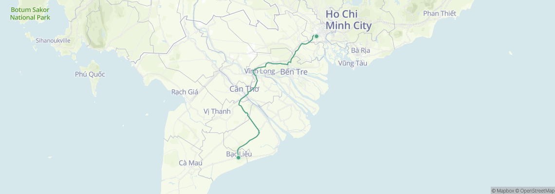 How long does it take to get from Bac Lieu to Ho Chi Minh?
