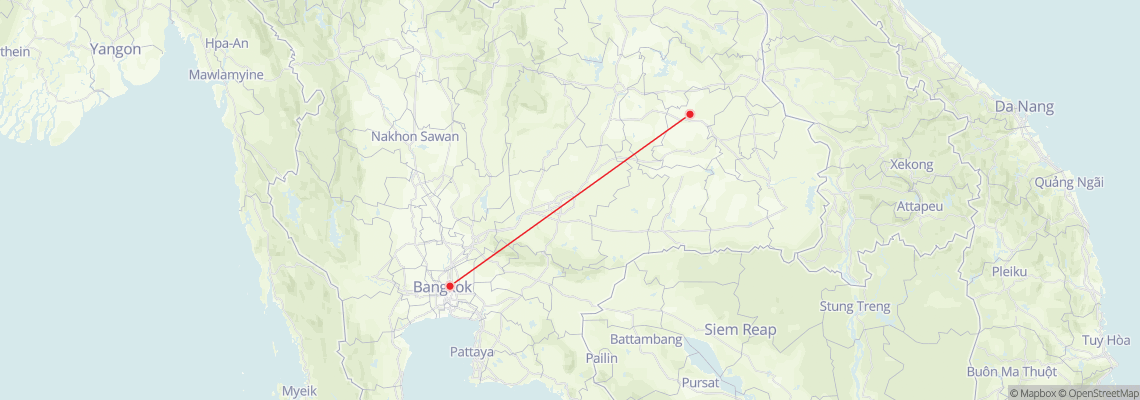 The travel distance between Bangkok and Roi Et is 500 km. The best option to travel from Bangkok to Roi Et is taking a plane.