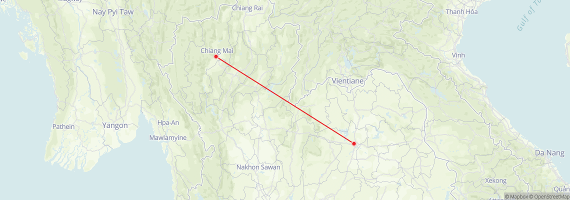 The travel distance between Chiang Mai and Khon Kaen is 647 km. The best option to travel from from Chiang Mai to Khon Kaen is taking a flight.