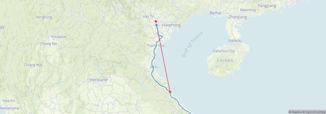 The travel distance between Dong Hoi and Hanoi is 504 km. There are two options to travel from Dong Hoi to Hanoi: taking a flight or a train.