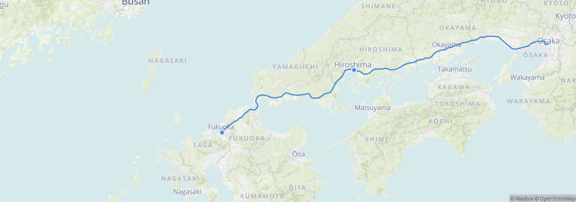 How long does it take to get from Fukuoka to Hiroshima?