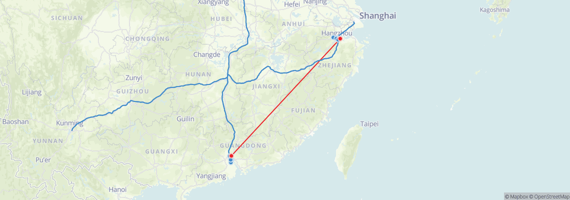Train routes from Hangzhou (South) to Guangzhou (Guangzhou Baiyun Railway Station)