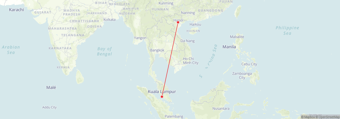 How long does it take to get from Hanoi to Kuala Lumpur?