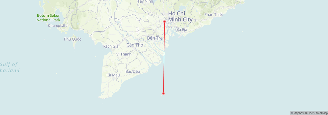 The travel distance between Ho Chi Minh and Con Dao is 230 km. There is only one option to travel from Con Dao to Ho Chi Minh: taking a flight.