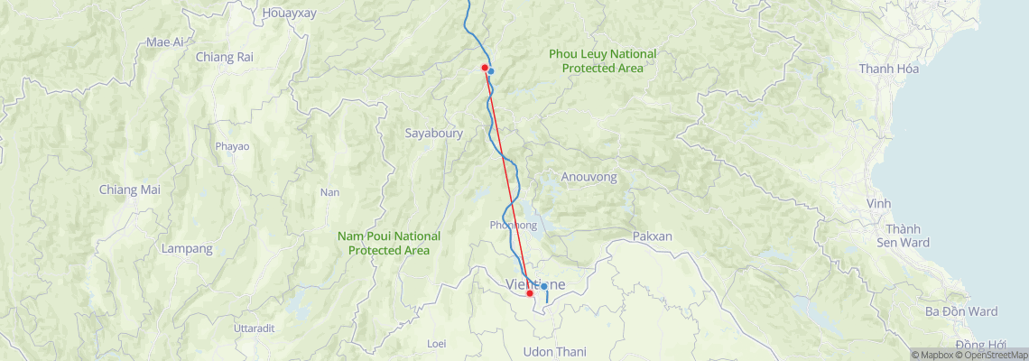 The travel distance between Luang Prabang and Vientiane is 311 km. The best option to travel from Luang Prabang to Vientiane is taking a train.