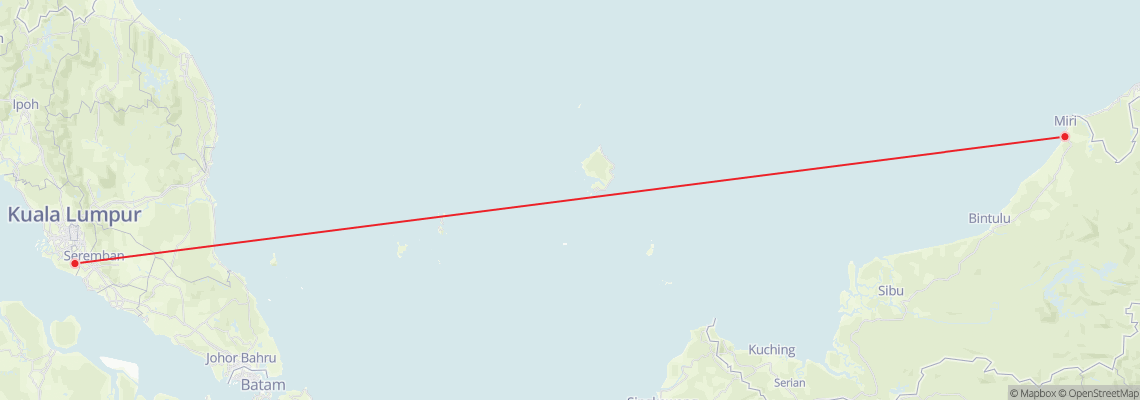 How far is Miri from Kuala Lumpur?