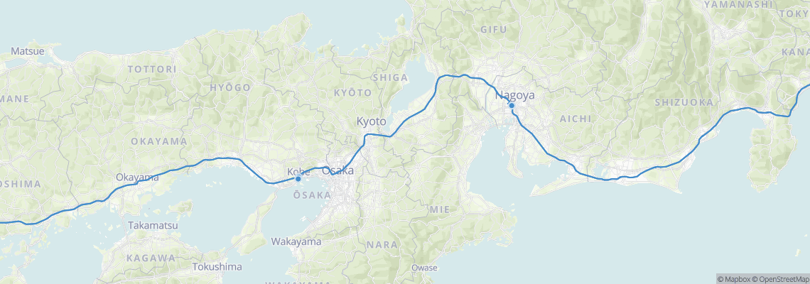 JR operates the Tokaido-Sanyo Shinkansen high-speed train between Tokyo and Fukuoka stopping in Nagoya and Kobe.