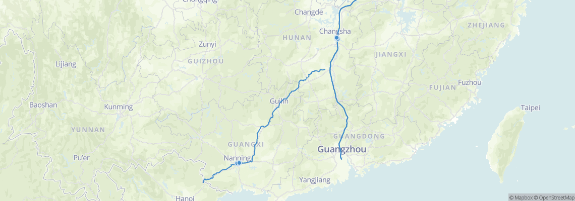 Train routes from Nanning (Nanning) to Changsha (Changsha Railway Station)