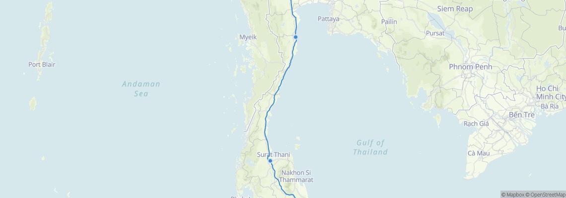 The travel distance between Surat Thani and Hua Hin is 444 km. The best option to travel from Surat Thani to Hua Hin is taking a train.