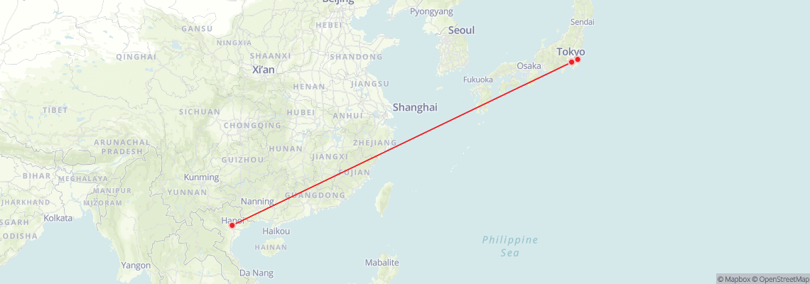 Results from Tokyo to Hanoi on Monday, 09 February 2026