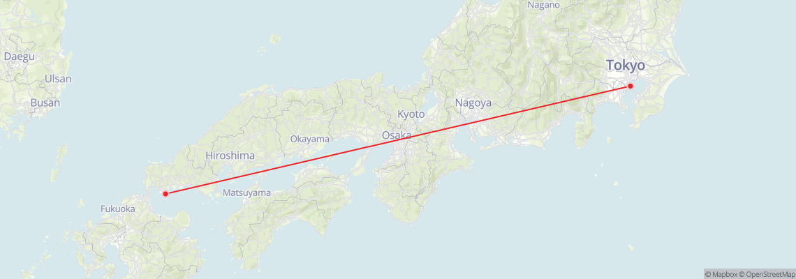 It takes less than 2 hours to get from Tokyo to Ube by plane.