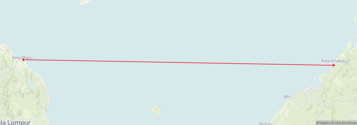 The travel distance between Kota Bharu and Kota Kinabalu is 1,532 km. The best option to travel from Kota Bharu to Kota Kinabalu is taking a flight.