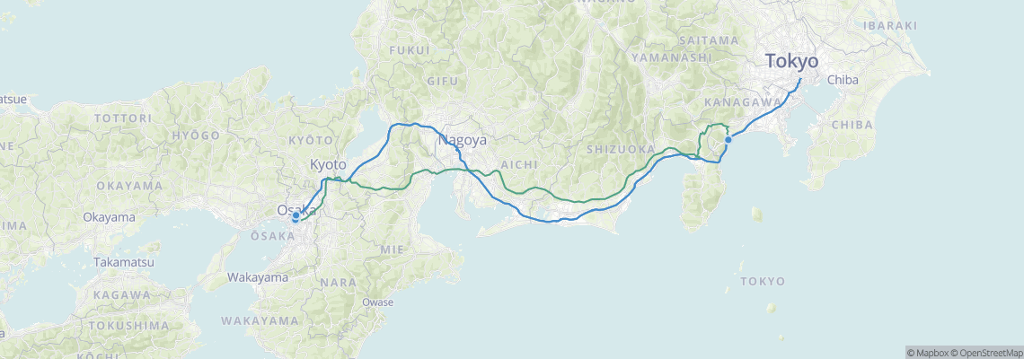 The travel distance between Osaka and Odawara is 440 km. There are two options to travel from Osaka to Odawara: taking a train or taking a bus.