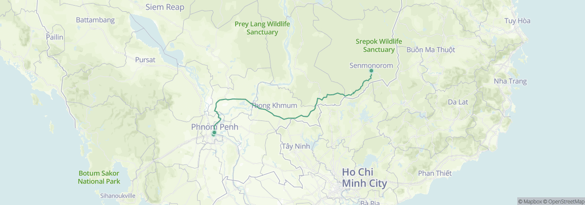 The travel distance between Phnom Penh and Mondulkiri is 360 km. The best option to travel from Phnom Penh to Mondulkiri is taking a bus.