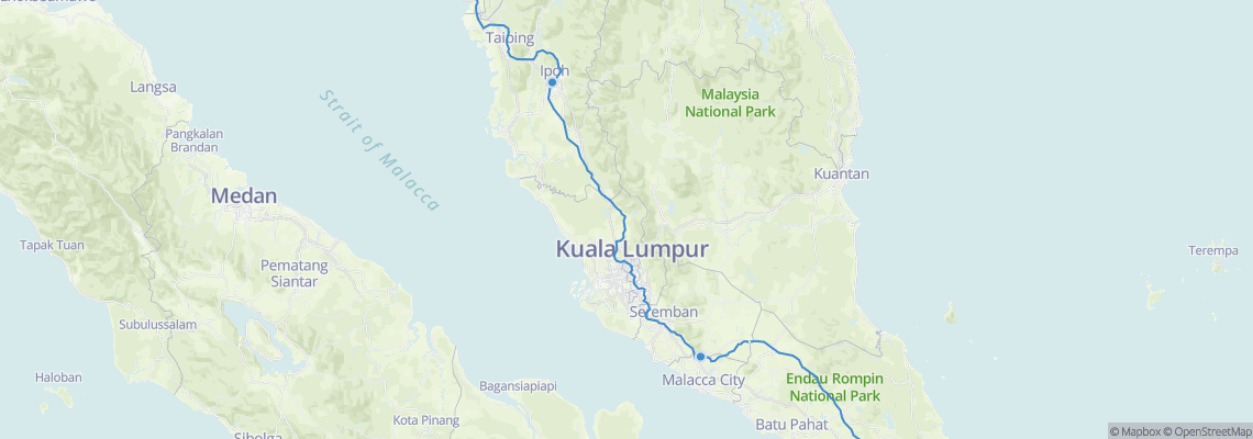 The travel distance between Pulau Sebang and Ipoh is 326 km. The best option to travel from Pulau Sebang to Ipoh is taking a train.