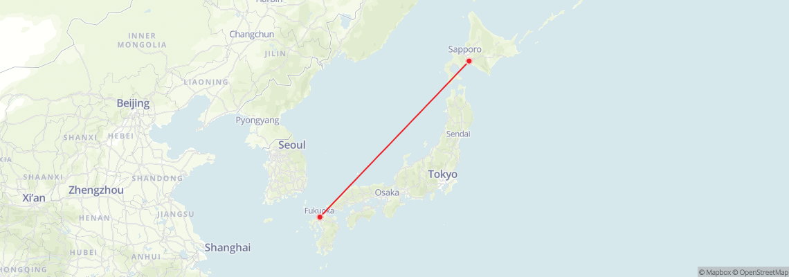 It takes 2-3 hours to get from Sapporo to Fukuoka by plane.