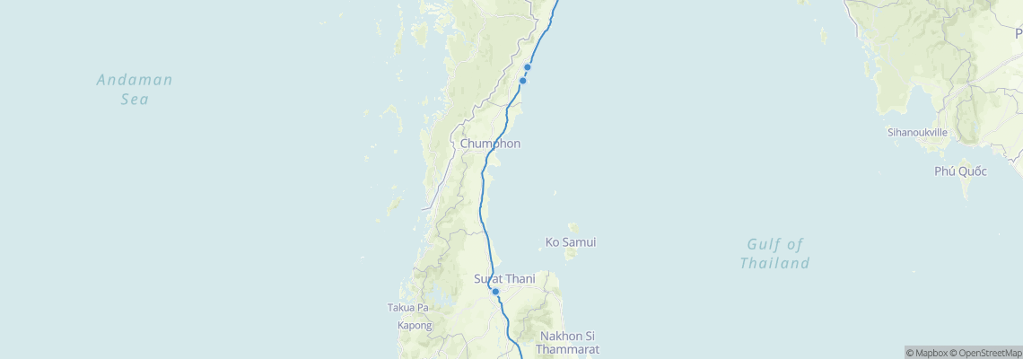 Train routes from Surat Thani to Bang Saphan