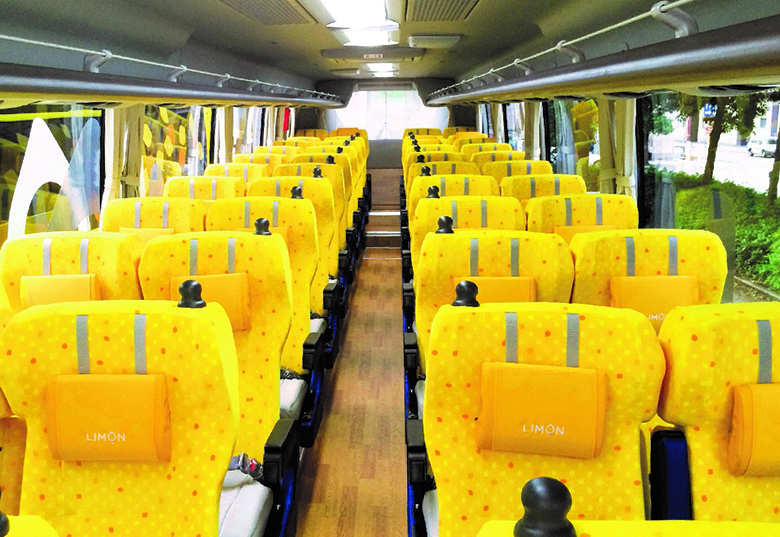 Limon Bus operates single-deck coaches equipped with reclining seats arranged in 4 seats per row and capacity for 40 passengers.