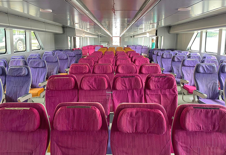 Ferries are equipped with air-conditioning, comfortable seats and on-board amenities.