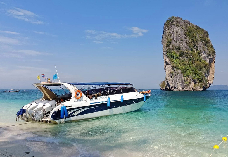 Passengers can travel by speedboat with Aonang Travel and Tour between Krabi, Phi Phi Islands and Bamboo Island.