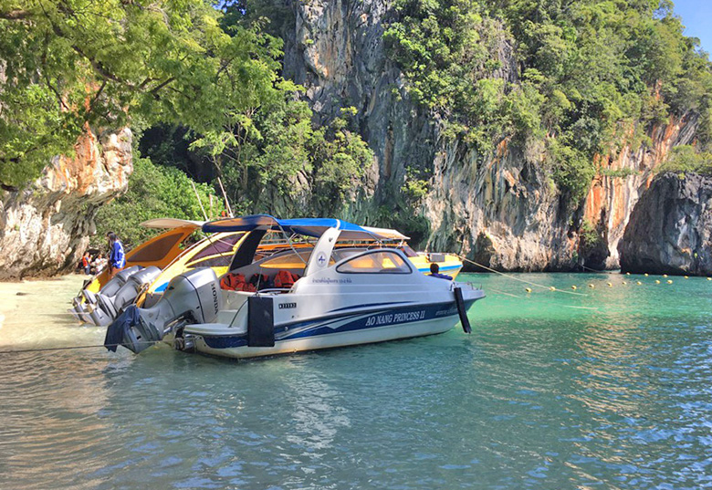 Passengers can travel by speedboat with Aonang Travel and Tour between Krabi and the Hong Islands in the Andaman Coast.