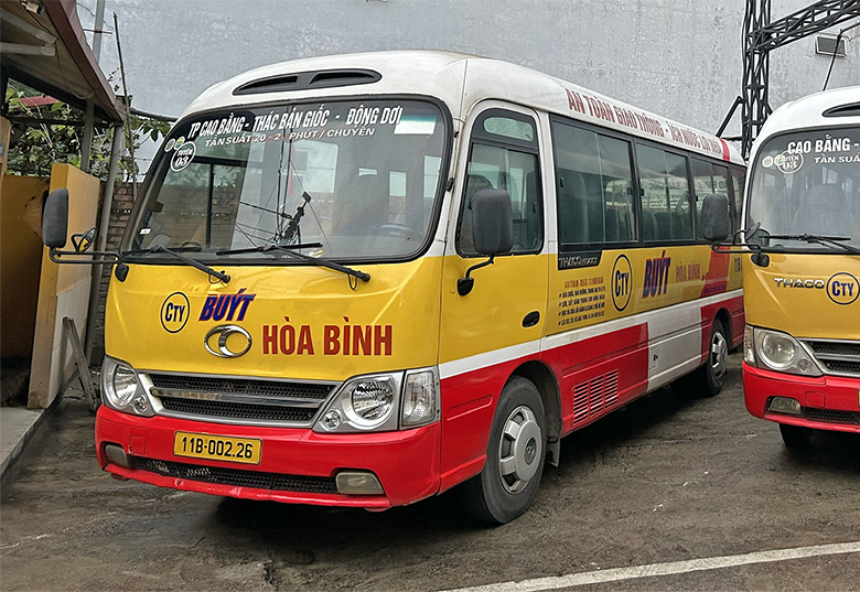 Hoa Binh is a Vietnamese bus company serving routes between Cao Bang and Ban Gioc.