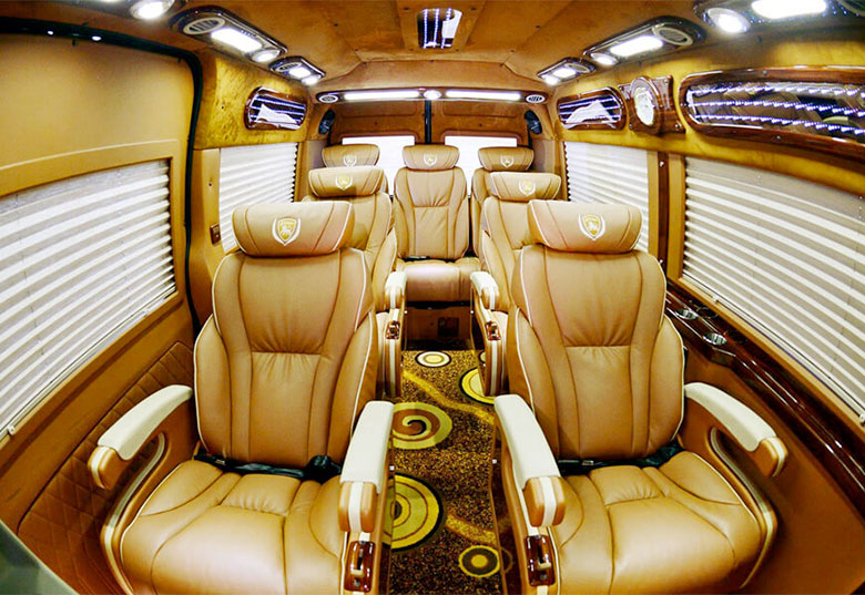 The most common model of minivan are the Hyundai Solati and the Ford Transit, having the interior refurbished with three rows of seats accommodating 10 to 15 passengers.