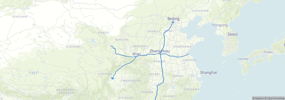 Rutas de tren de Chengdu (West) a Beijing (Beijing West Railway Station)