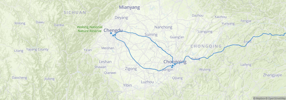 Rutas de tren de Chengdu (South) a Chongqing (Chongqing West Railway Station)