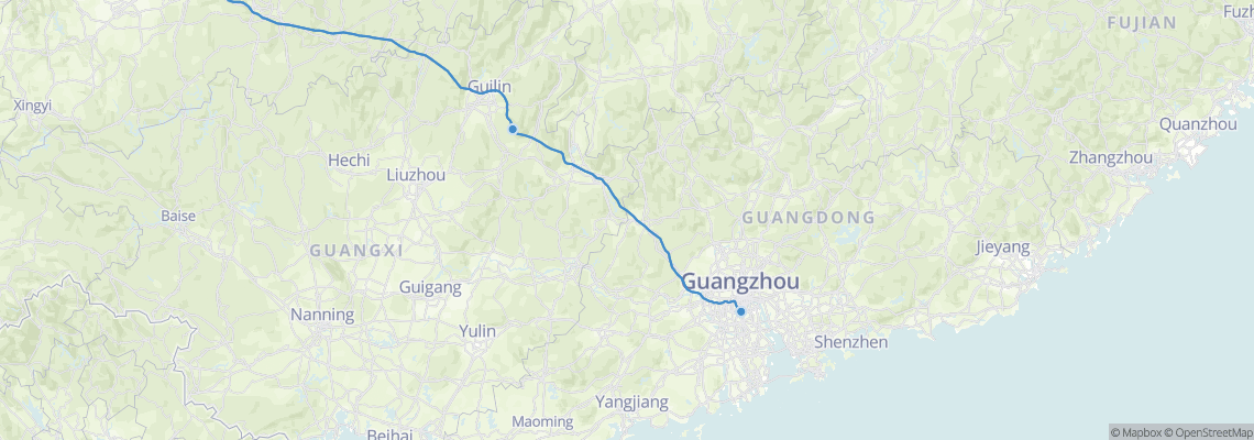 Rutas de tren de Guangzhou (Guangzhou) a Yangshuo (Yangshuo Railway Station )
