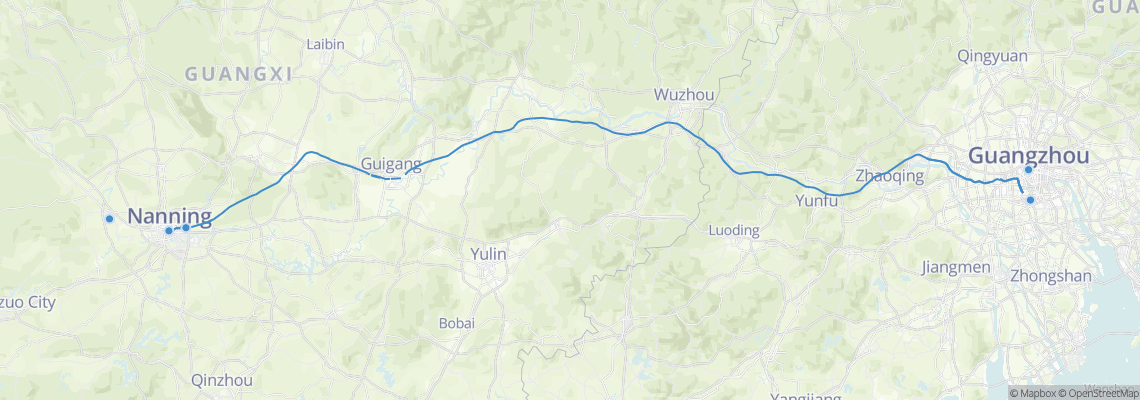 Rutas de tren de Nanning (West) a Guangzhou (Guangzhou South Railway Station)