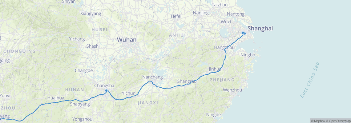 Rutas de tren de Shanghai (South) a Changsha (Changsha South Railway Station)