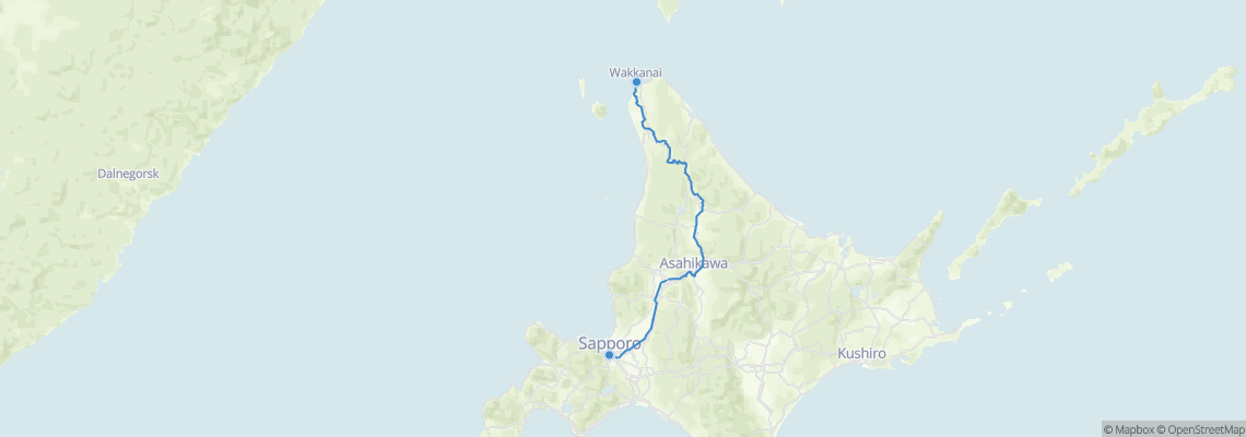 Rutas de tren de Wakkanai (Wakkanai) a Sapporo (Sapporo Station)