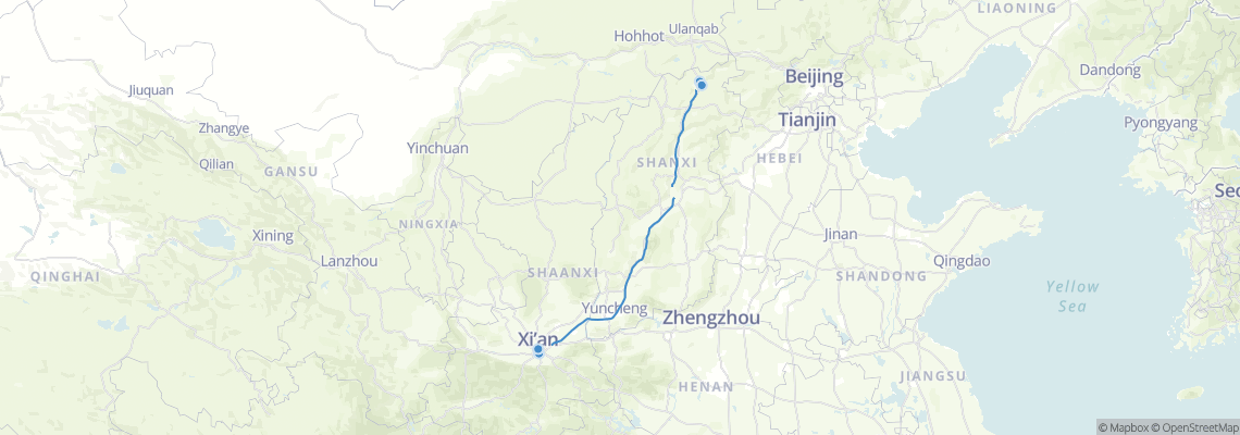 Rutas de tren de Datong (South) a Xi An (Xi An North Railway Station)