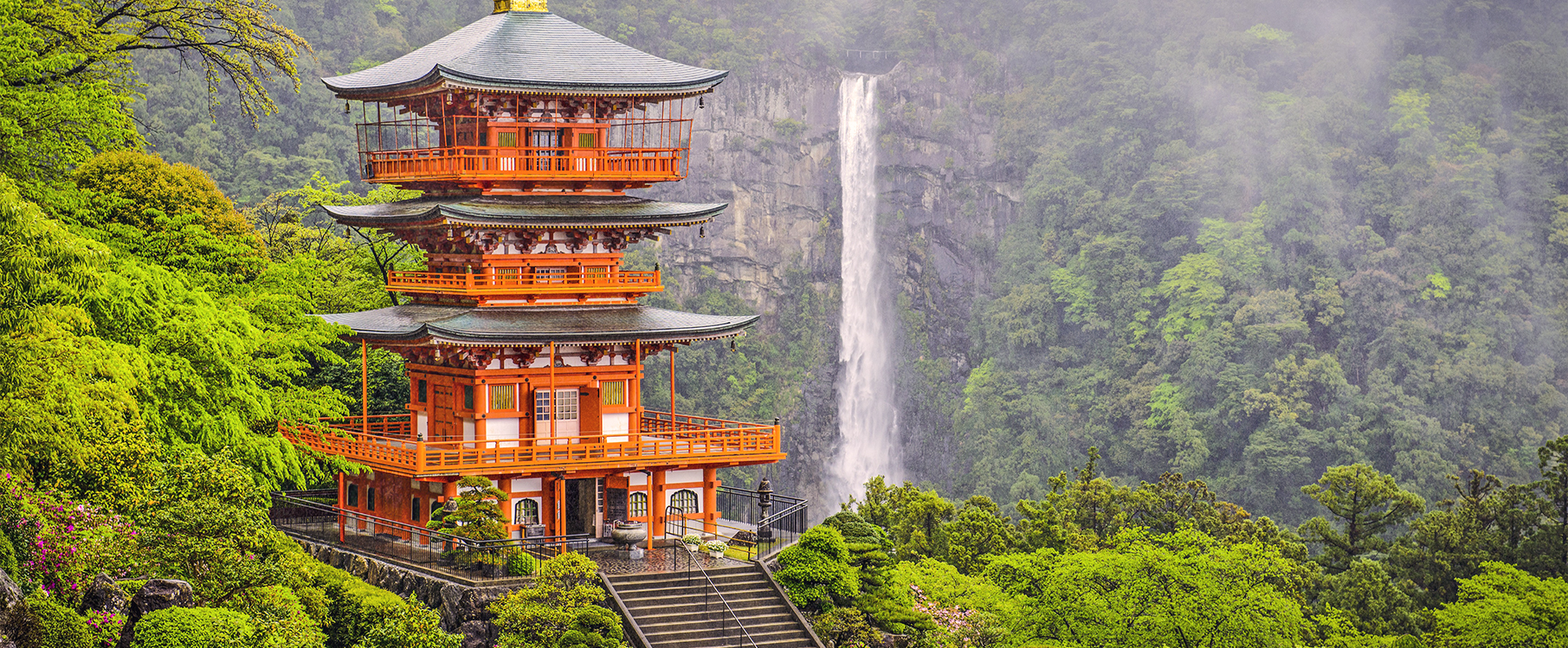 A lo largo de la costa sur, los senderos sagrados de peregrinación de Kumano Kodo —accesibles desde Shingu y Kii-Katsuura— invitan a los viajeros a recorrer los caminos que conducen a los venerados santuarios de Kumano Sanzan.