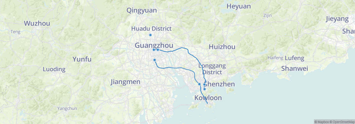 Itinéraires de train de Guangzhou (South) à Shenzhen (Shenzhen North Railway Station)