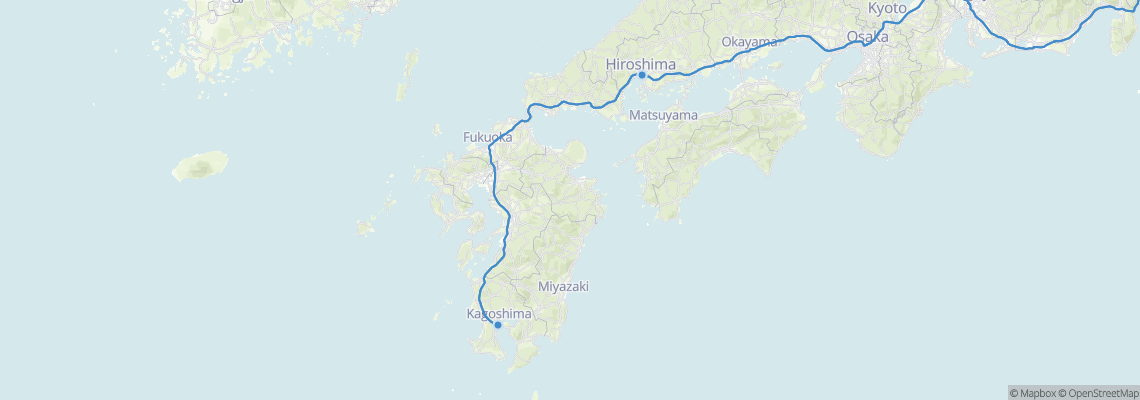 Itinéraires de train de Hiroshima (Hiroshima) à Kagoshima (Kagoshima-Chuo Station)