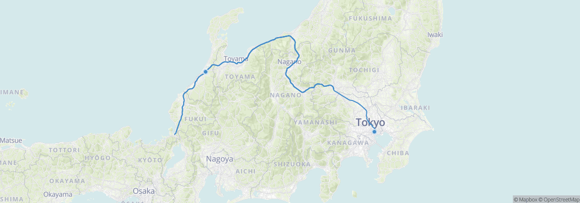 Itinéraires de train de Kanazawa (Kanazawa) à Tokyo (Tokyo Station)