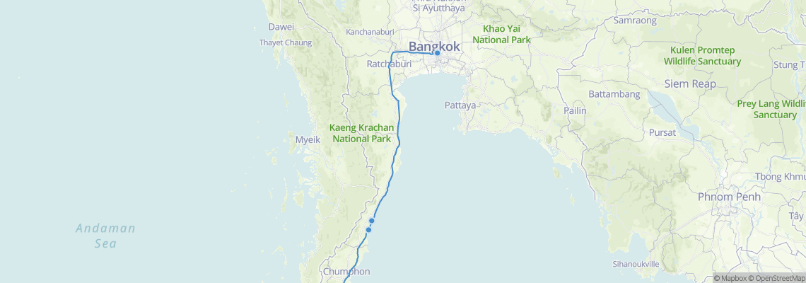Itinéraires de train de Bang Saphan à Bangkok