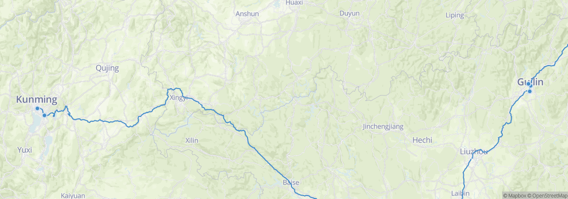 列車のルート 桂林 (桂林駅) から 昆明 (昆明南駅)