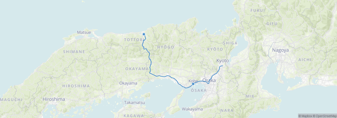 列車のルート 神戸 (三ノ宮駅) から 鳥取 (鳥取駅)