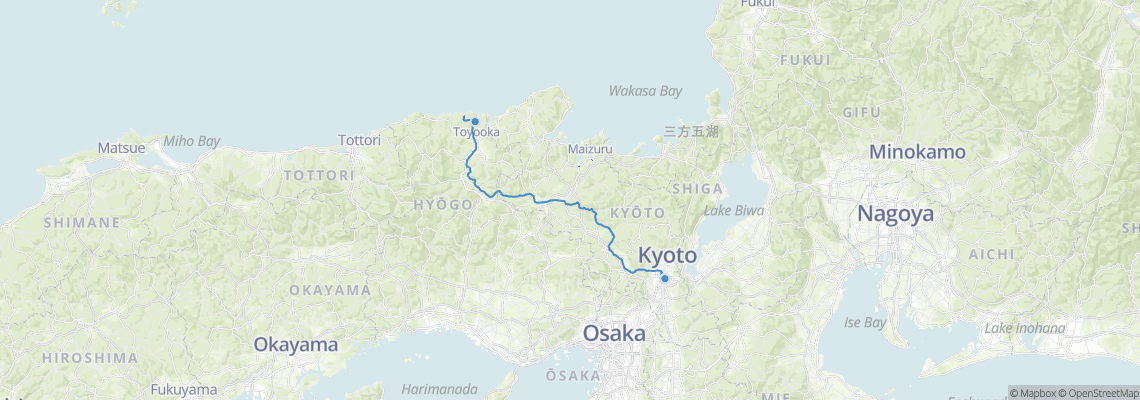 列車のルート 京都 (京都駅) から 豊岡 (城崎温泉駅)