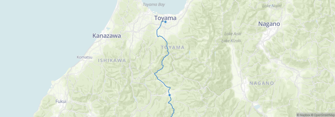 列車のルート 高山 (高山駅) から 富山 (富山駅)