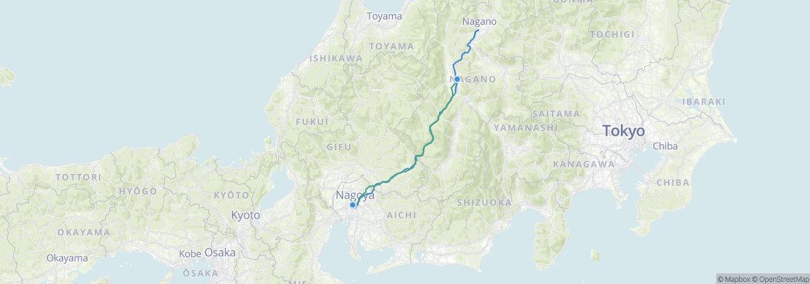เส้นทางรถไฟ เดินทางจาก มัตสึโมโตะ (มัตสึโมโตะ) ไป นาโงยะ (สถานีรถไฟนาโงยะ)
