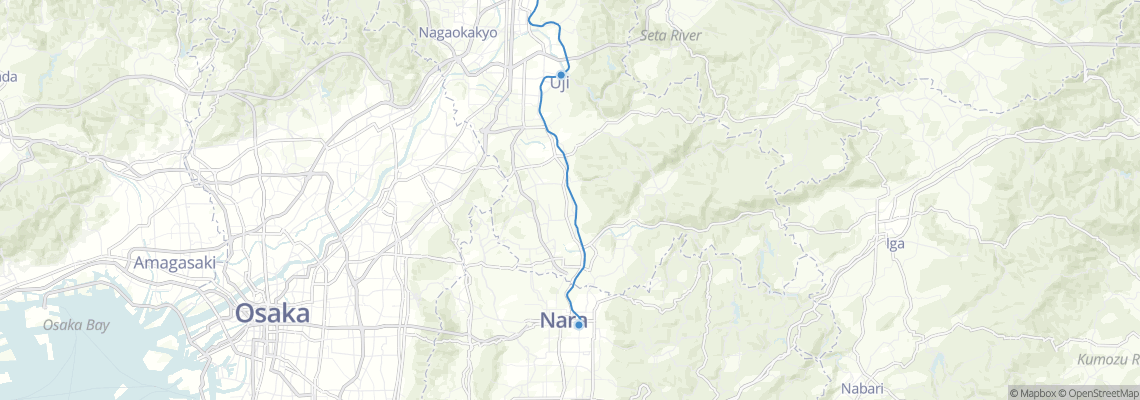 เส้นทางรถไฟ เดินทางจาก นาระ (นาระ) ไป อูจิ (สถานีรถไฟอูจิ)