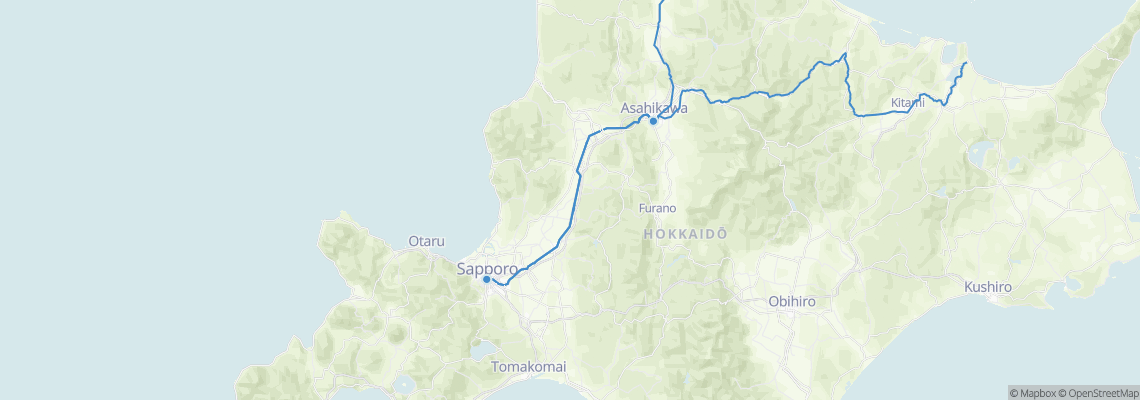 เส้นทางรถไฟ เดินทางจาก ซัปโปโระ (ซัปโปโระ) ไป อาซาฮิกาวะ (Asahikawa Station)