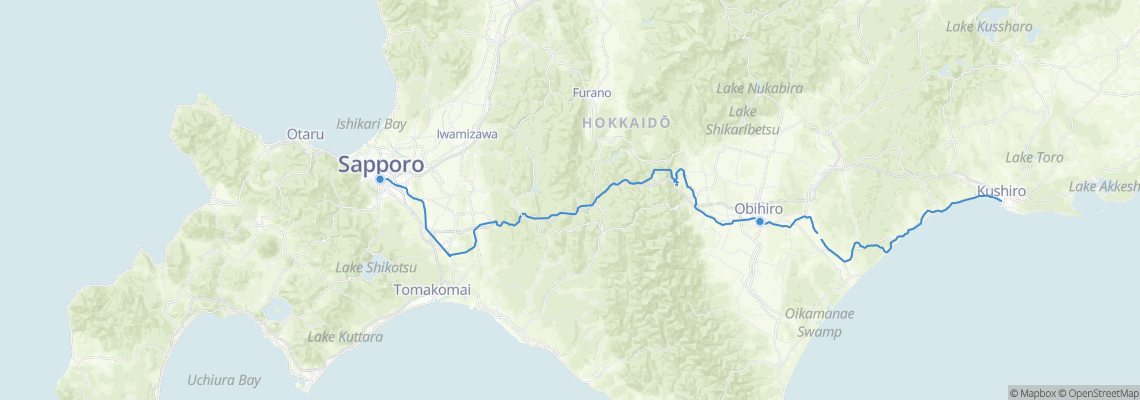 เส้นทางรถไฟ เดินทางจาก ซัปโปโระ (ซัปโปโระ) ไป โอบิฮิโระ (Obihiro Station)