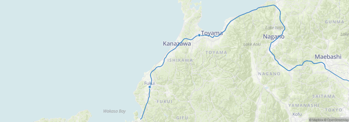 เส้นทางรถไฟ เดินทางจาก ทากาโอกะ (ชินทากาโอกะ) ไป ฟูกูอิ (Fukui Station)