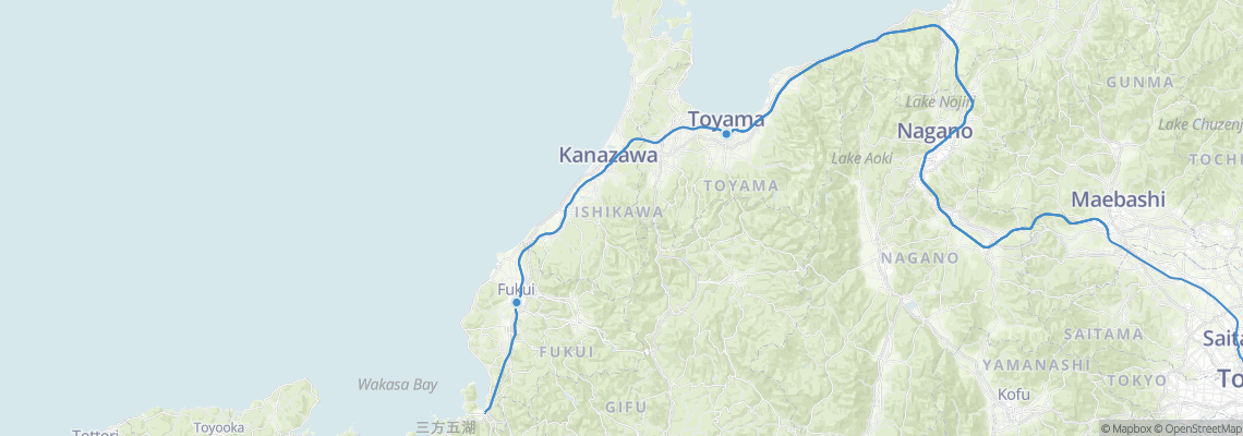 เส้นทางรถไฟ เดินทางจาก โทยามะ (โทยามะ) ไป ฟูกูอิ (Fukui Station)