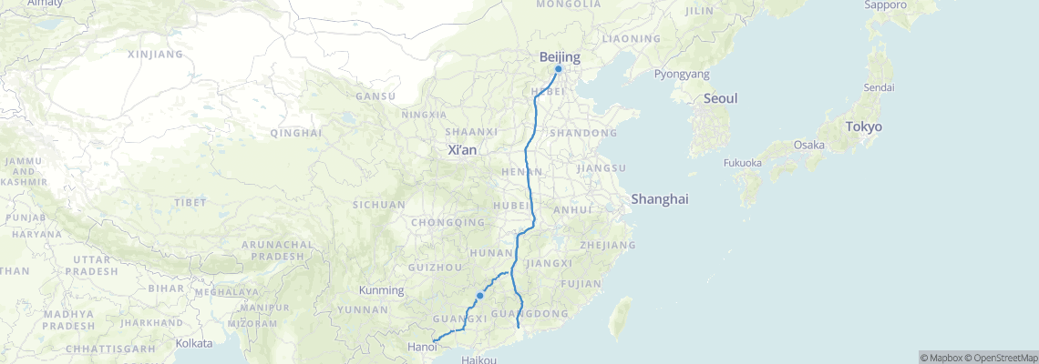 เส้นทางรถไฟ เดินทางจาก ปักกิ่ง (Fengtai) ไป กุ้ยหลิน (Guilin North Railway Station)